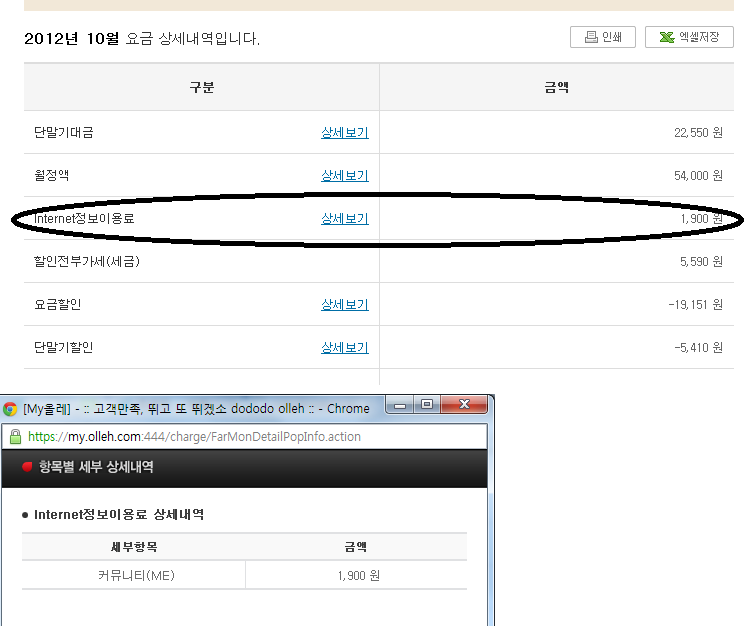 이런 요금이 1월부터 계속 청구되고있었음