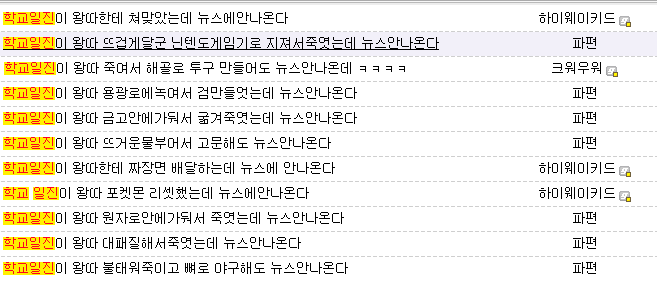 학교 일찐이 왕따한테 *했는데 뉴스에 안나온다