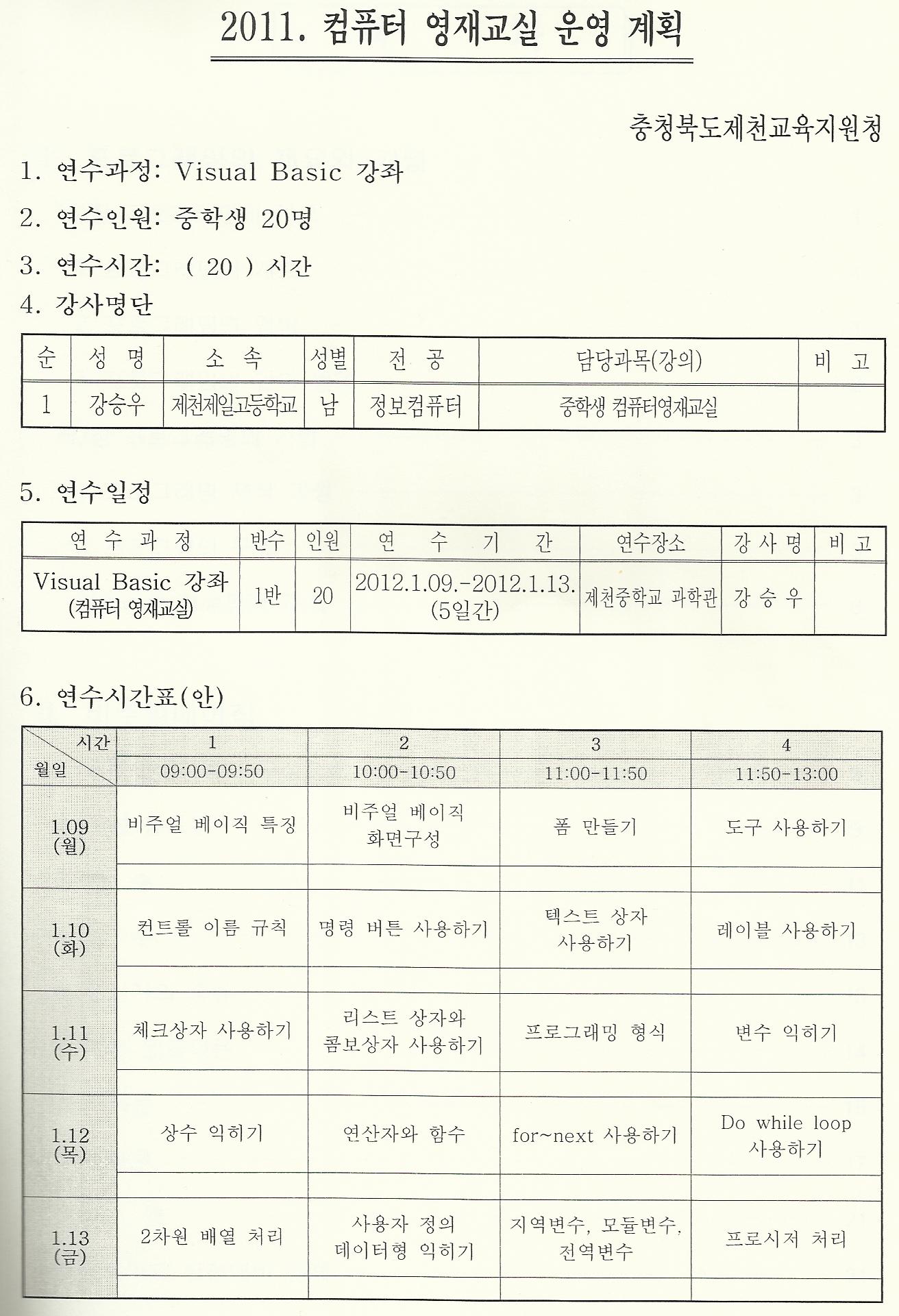 1. 08:55분 쯤 음악선생이 나 부르더니만 아래것 때문에 1월 7일 부터 1월 11일 까지 제천중학교로 오란다...