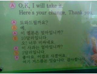 A: 여기 거스름돈 있습니다. 감사합니다.