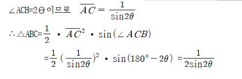 삼각형의 넓이=1/2 ac sinB=1/2*2*1*sinB=sinB