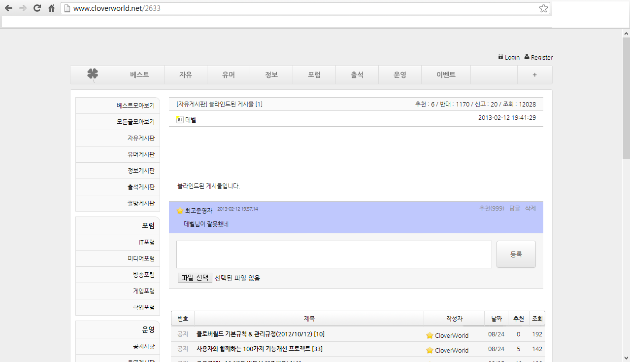CopyRight © 2009-2012 CloverWorld & Youhogeon.com. All Right Reserved.