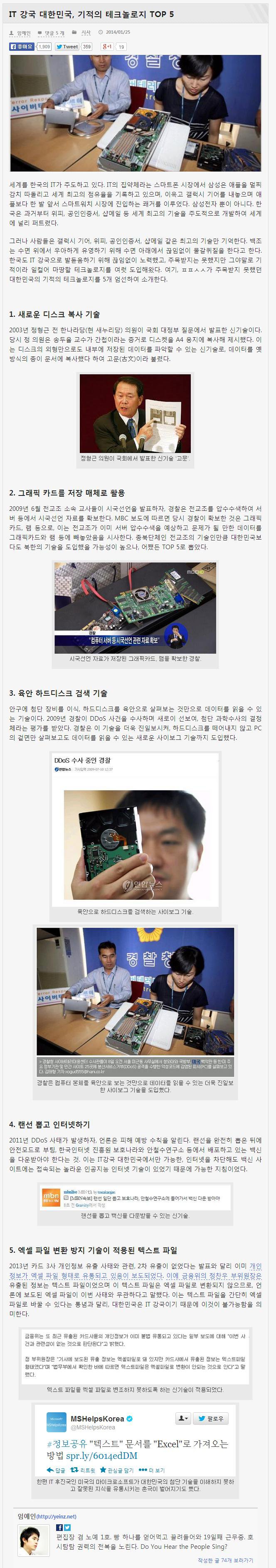 [펌] IT 강국 대한민국의 기적의 테크놀로지 TOP 5